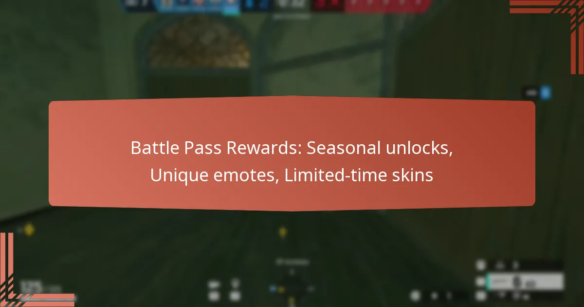 Seasonal unlocks in Tom Clancy’s Rainbow Six Siege Battle Pass refer to exclusive rewards that players can earn by progressing through the Battle Pass during a specific season. These unlocks often include unique skins, emotes, and other cosmetic items that enhance the gaming experience and showcase player achievements.
